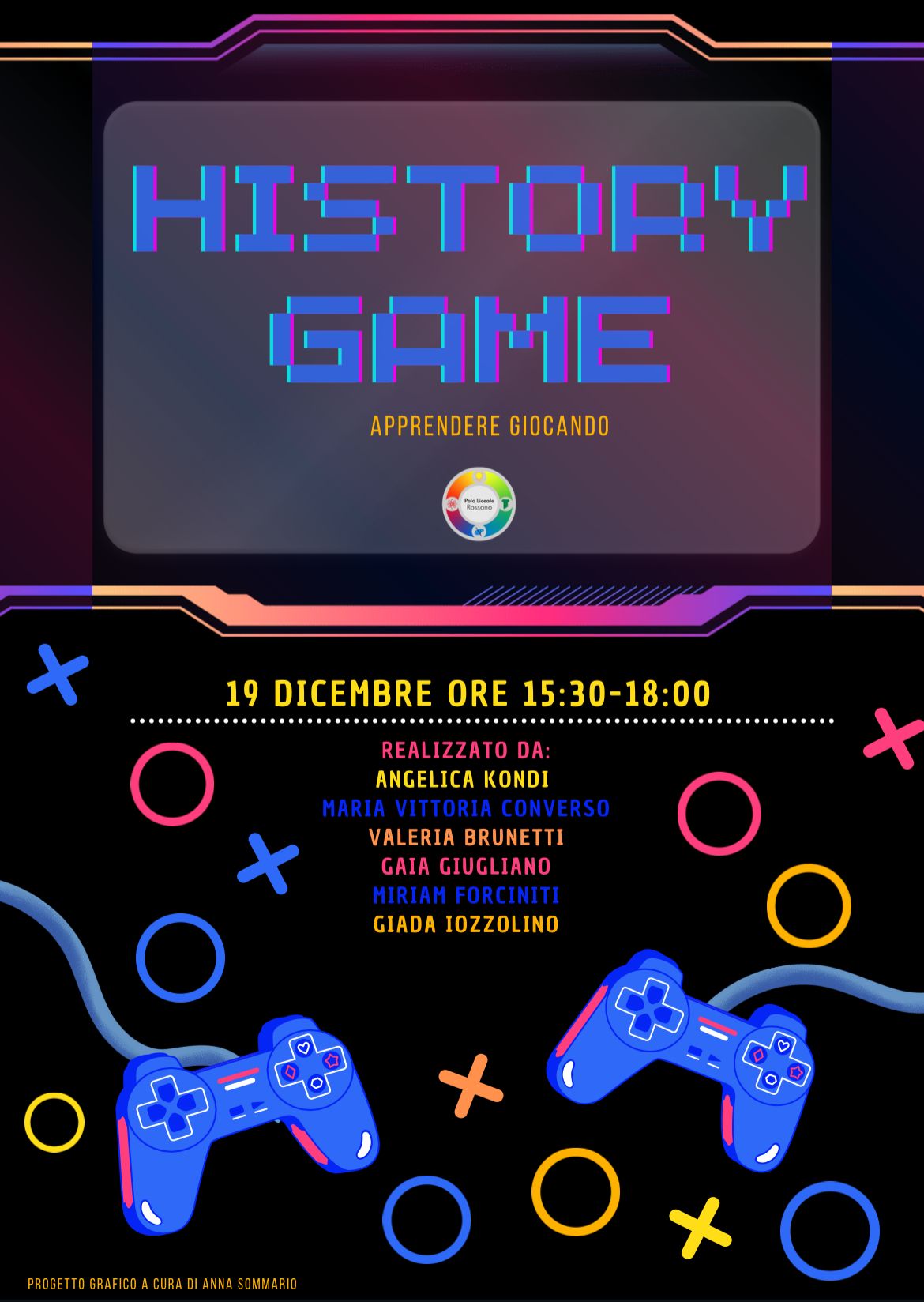Sempre il 19 dicembre, dalle 15.30 alle 18, il Liceo San Nilo “History Game”, iniziativa per “apprendere giocando” realizzato a cura di: Angelica Kondi, Maria Vittoria Converso, Valeria Brunetti, Gaia Giugliano, Miriam Forciniti. Giada Iozzolino (progetto grafico di Anna Sommario).